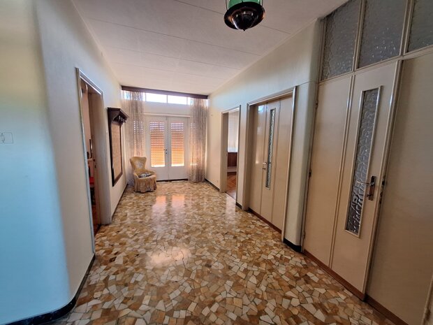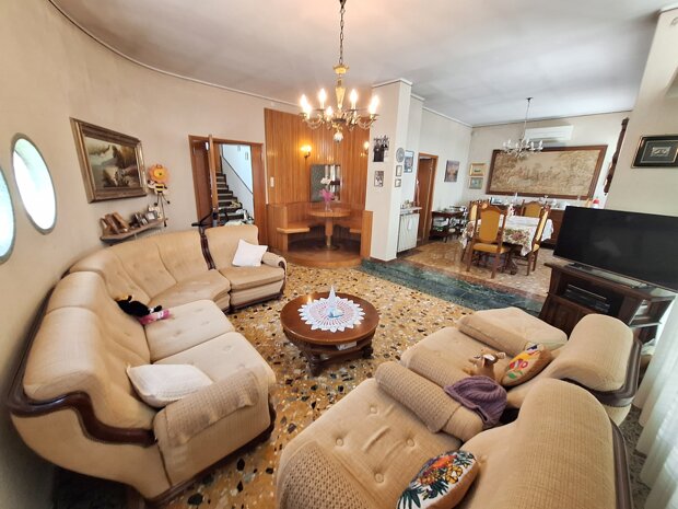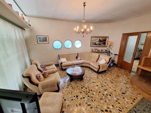 Vicina al centro ma in contesto riservato proponiamo questa particolare villa anni '50 con giardino pertinenziale completamente recintato ed ampio garage. L'immobile, disposto su due livelli, è composto da ingresso, doppio salone, cucina, tre camere da letto e due bagni al piano rialzato, ampio disimpegno, ulteriore zona giorno con tre camere e servizio al primo piano. Caratteristica che lo contraddistingue l'ampio solarium al secondo piano con vista panoramica sulla città ed i dettagli costruttivi tipici dell'epoca. Ideale per famiglia numerosa ed indicata anche per la realizzazione di due spaziosi appartamenti completamente autonomi. Vieni a scoprirla!