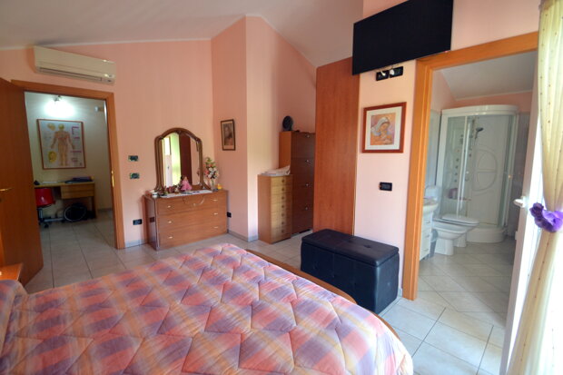 In posizione soleggiata e tranquilla villa indipendente così composta: al piano terra zona giorno con bellissimo caminetto centrale, bagno di servizio e porticato esterno, al primo piano tre camere da letto matrimoniali ciascuna con bagno privato, terrazza e cabina armadio, al piano scantinato invece troviamo la grande centrale termica ed un'enorme salone dove poter ricavare ciò che più piace, dalla taverna alla zona relax. L'immobile, di recente realizzazione, è dotato di ogni comfort, dal climatizzatore con pompa di calore al riscaldamento a pavimento, naturalmente collegati ai pannelli solari e fotovoltaci. Da non trascurare la predisposizione interna per l'ascensore, dallo scantinato fino al primo piano. Ottimo stato manutentivo, non fartela scappare!